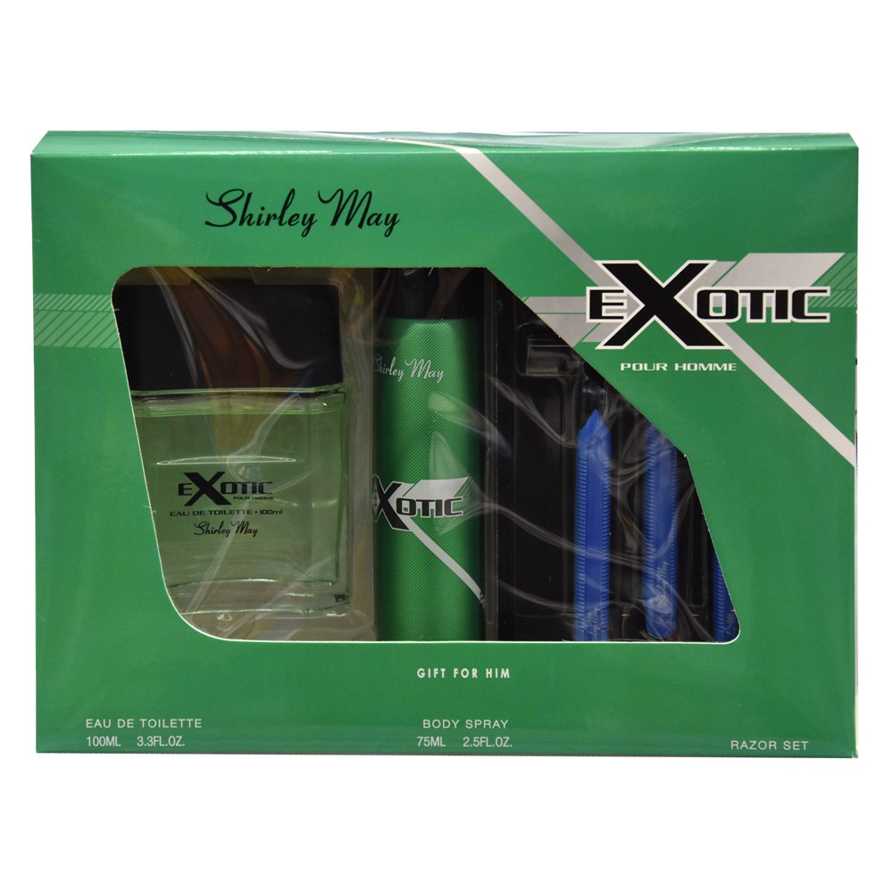 Men's gift set, which contains eau de toilette (EDT), with a concentration of 5-15% of essential oils (perfume) and with a fragrance that lasts for a long time. The set also contains a body spray, with moisturizing and soothing effect on the body skin, with perfume content, and 3 durable shaving razors made of stainless steel material.