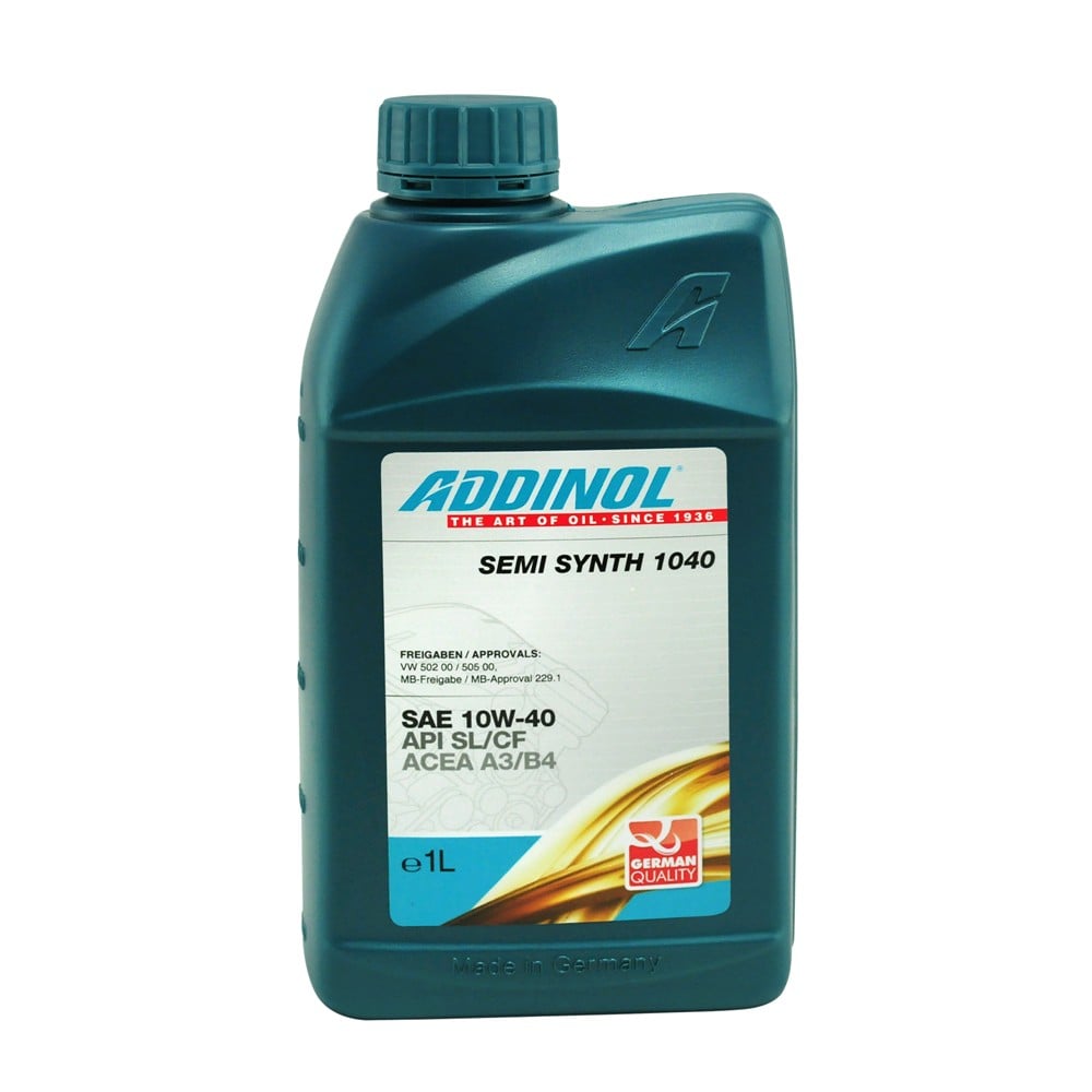 ADDINOL Semi Synth 1040 is a fuel-saving, semi-synthetic fuel-economy oil in SAE-grade 10W-40. The combination of high quality mineral oil raffinates and synthetic base oils with a modern additivation ensures outstanding engine cleanliness as well as excellent corrosion and wear protection. Highly suited for passenger cars and transporters with gasoline or diesel engines with regard to the instruction manual