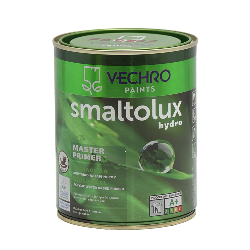 Ecological primer, Vechro, Smaltolux, for every surface, 0.75L, white, 10-12 m²/L, dilution 8-15% with water, 1-2 hours of drying.