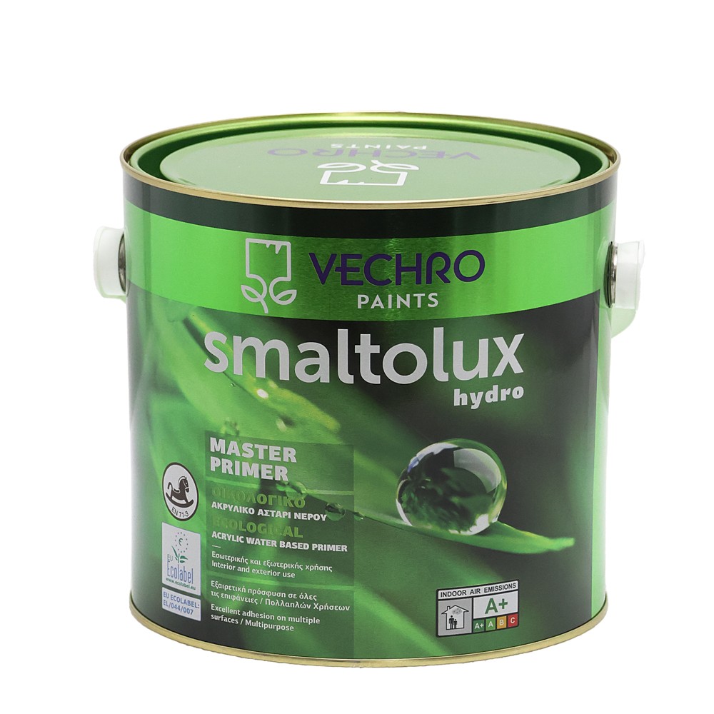 High quality ecological acrylic water based multipurpose primer suitable for interior and exterior use. It has excellent adhesion on a wide range of substances, such as wood blocking tannin of knots, MDF, chipboard, aluminum, galvanized steel, rigid PVC, enamels, ceramic tiles, glass. Recoatable with enamel, emulsion or acrylic paint. It is ideal primer of water-based enamels SMALTOLUX hydro, in order to give higher covering and endurance.