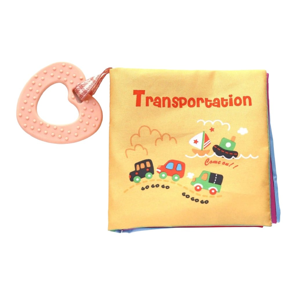 Discover the world of transportation with this educational textile baby book, designed to stimulate your baby's senses and early development. Illustrated with vibrant colors and recognizable shapes like cars, trains, and planes, this book helps children learn while having fun. An educational and entertaining toy that helps develop sight, touch, and motor coordination, making this book a great choice for any baby.