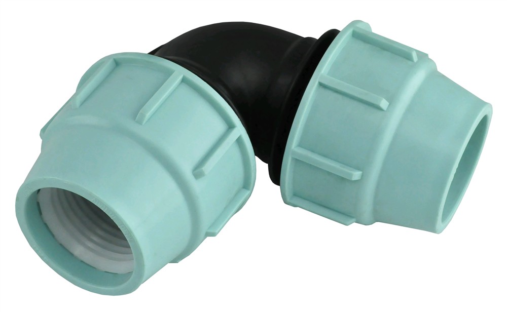 Elbow with faucet of PP 25x25mm with angle 90° used to installations angular water supply infrastructure lines, in irrigation and agricul, etc. The elbow enables network returns 90° angle. Elbow network connects two pipes through coercive mechanical faucet. Manufactured with European standards, resistant to corrosive materials designed to withstand pressure up to 10bar.