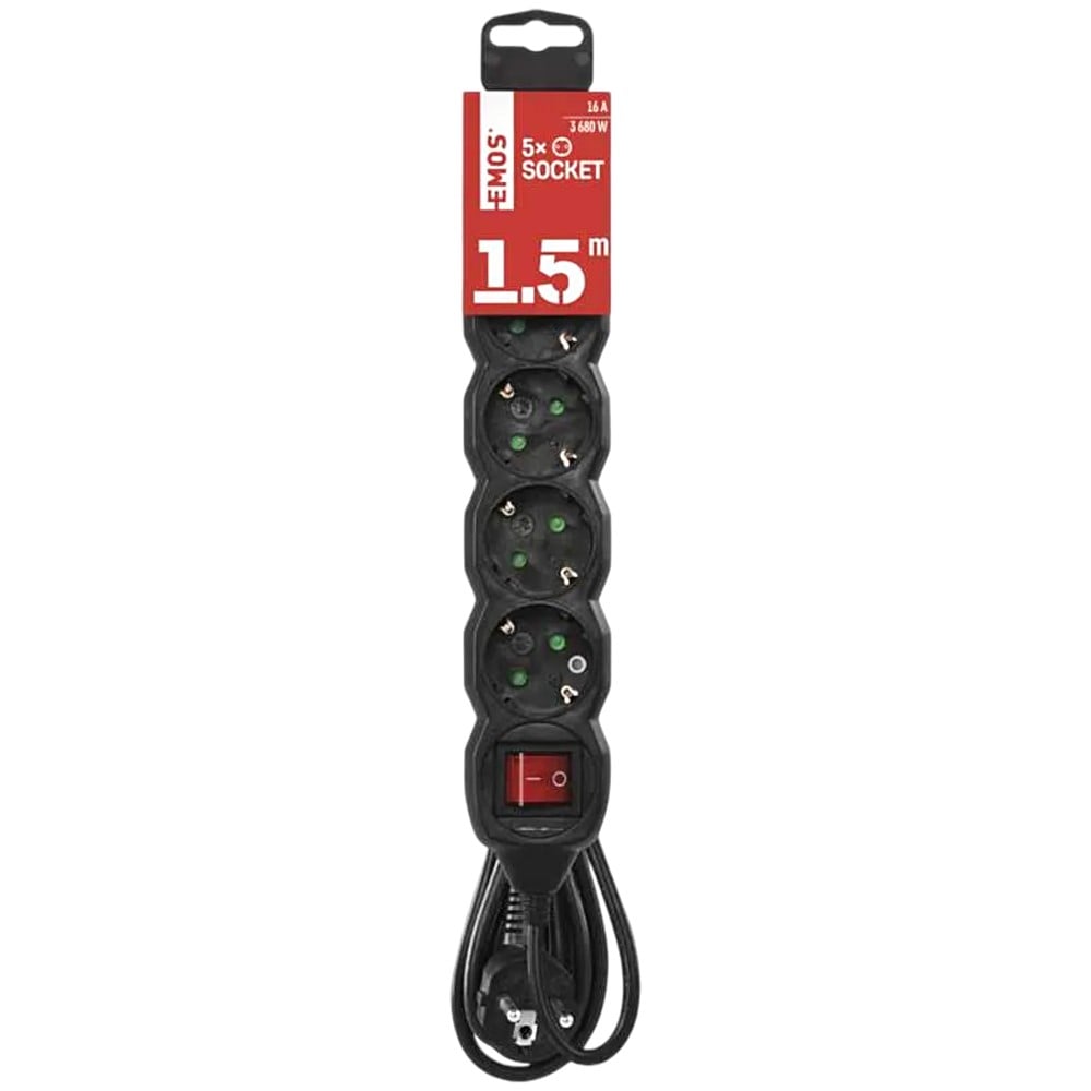 Electric extender, 5 modules, 1.5m, 3x1.5mm, black, with switch, 16A