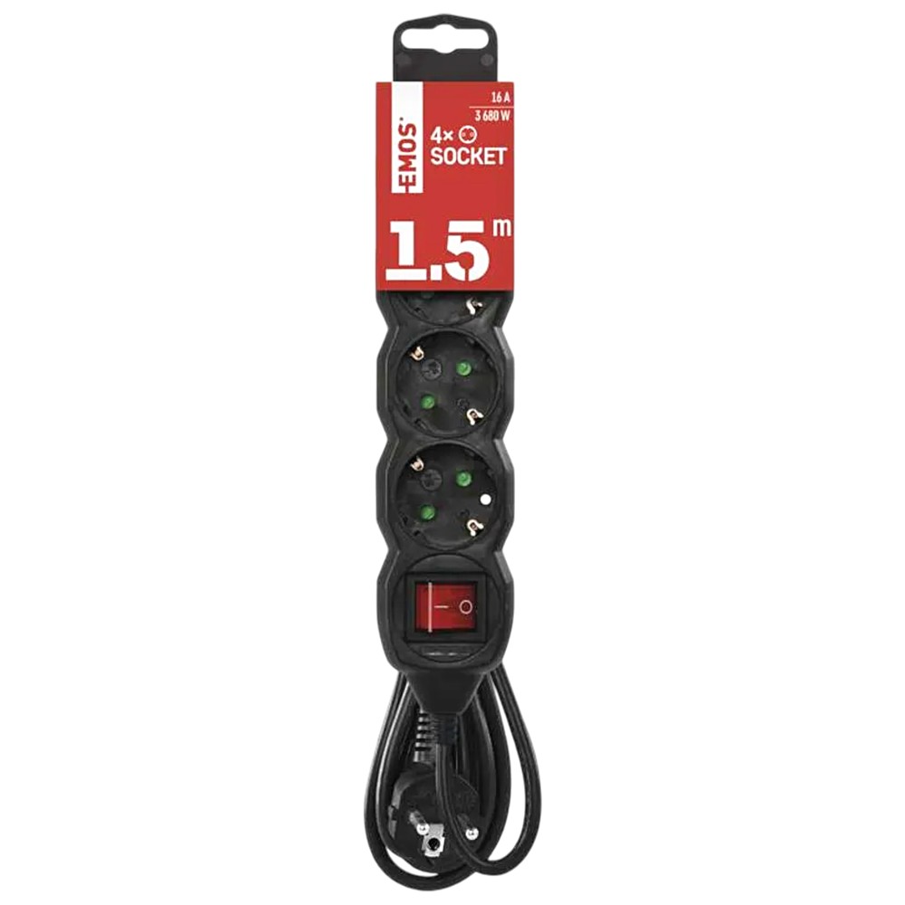 You're reviewing:Electric extension cord, 4 modules, 1.5m, 3x1.5mm, black, with switch, 16A