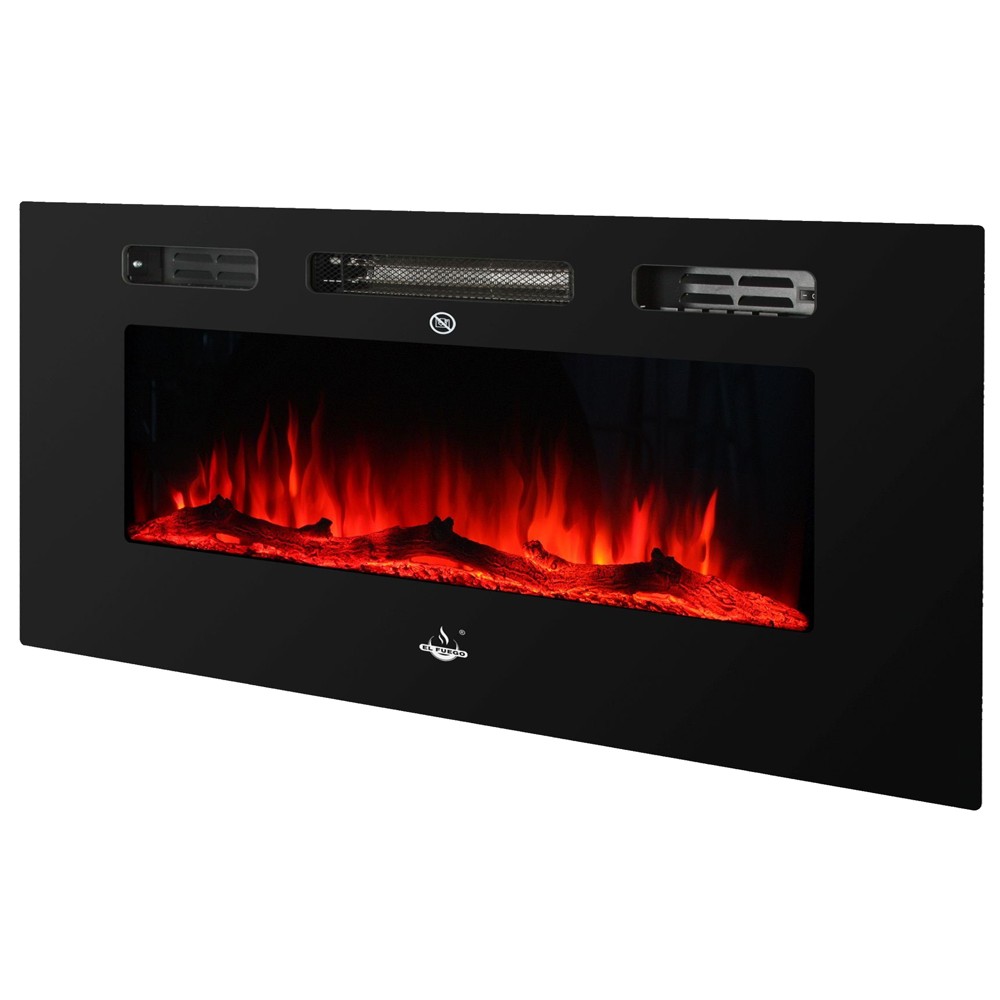 This wall-mounted electric fireplace always impresses with its very elegant, stylish look and its easy operation. The large heating power creates a pleasant warm air flow immediately after switching on. The simple front consists of a black safety glass panel, which fits visually very pleasantly into any living environment. There are 2 power levels available. The spectacular glowing effect (using LED lighting) can be selected separately in three different colors. It can also be easily controlled using a remote control (included in delivery). The integrated overheating protection ensures safe operation of the electric fireplace. Power: 900/1800W, LED lighting 3 colors (red, blue, violet), dimmer function for flame effect, with thermostat control, front made of safety glass, includes remote control.