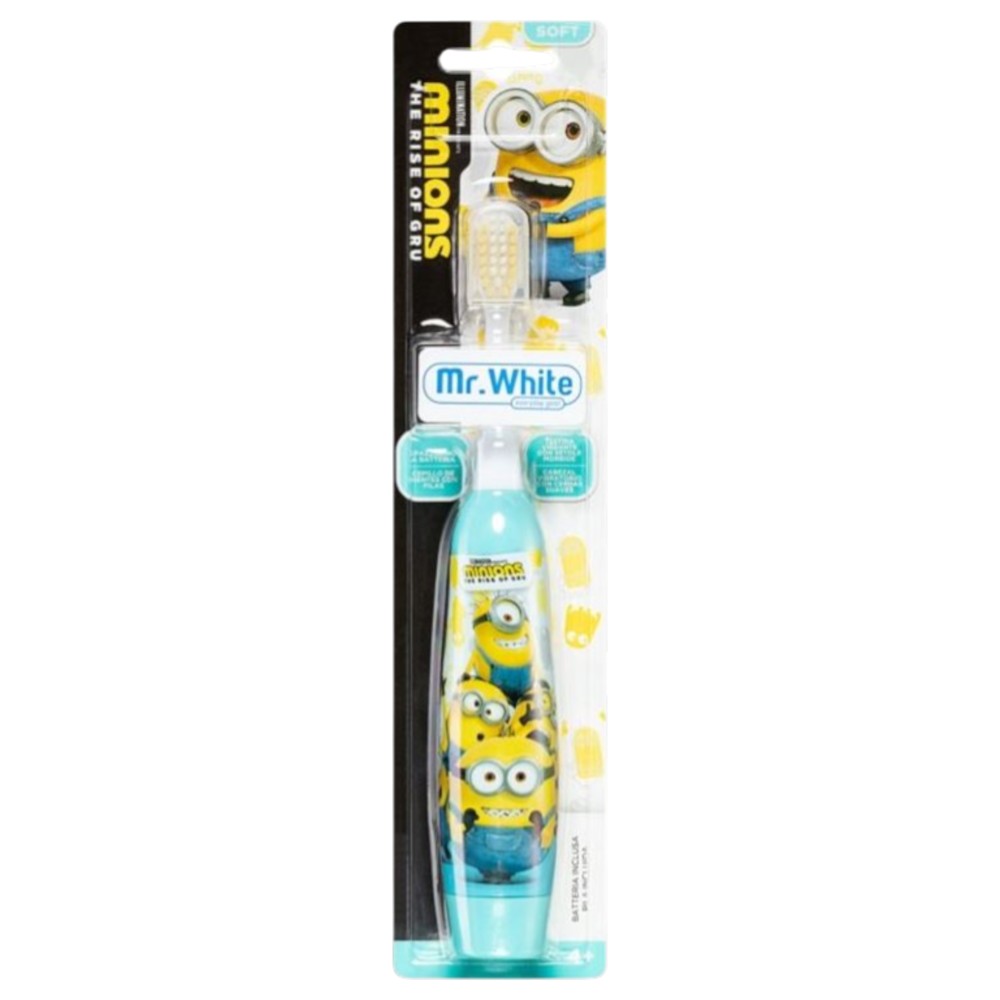 This Minions electric toothbrush is specially designed for children over 4 years old, combining functionality with their favorite design. With its yellow color and Minions character illustration, it makes brushing your teeth a pleasant and fun activity every day. It works with a replaceable 1.5V AA battery (included).