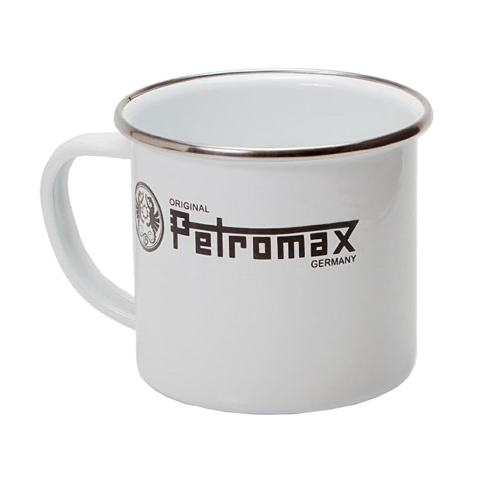 Petromax cup, enameled. Suitable for coffee, tea. The combination of glass and steel results in a strong and easy to clean material, it is not only heat resistant but also lightweight. The combustible surface is resistant to scratches and cuts. Used for camping, by the fire or at home.