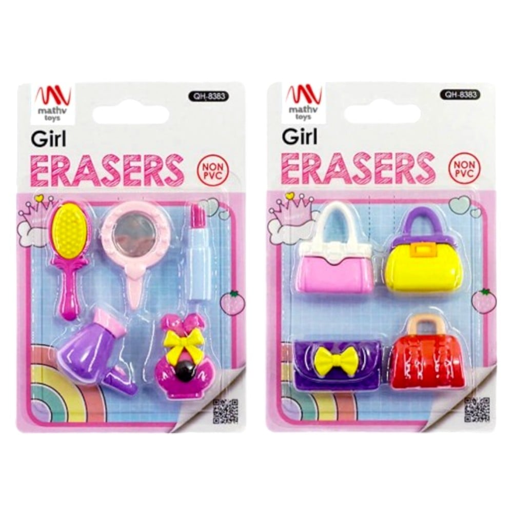 Girl make up erasers set, mixed colors. This set offers erasers in different designs and colors for erasing notes and mistakes, bringing a fun touch to school supplies.