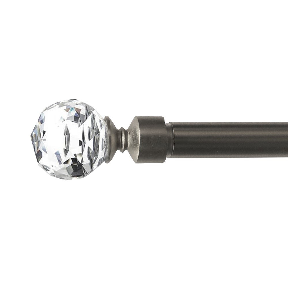 Extended curtain rod with glass knob, metalic, silver, Dia.16/19mm / 120-210 cm