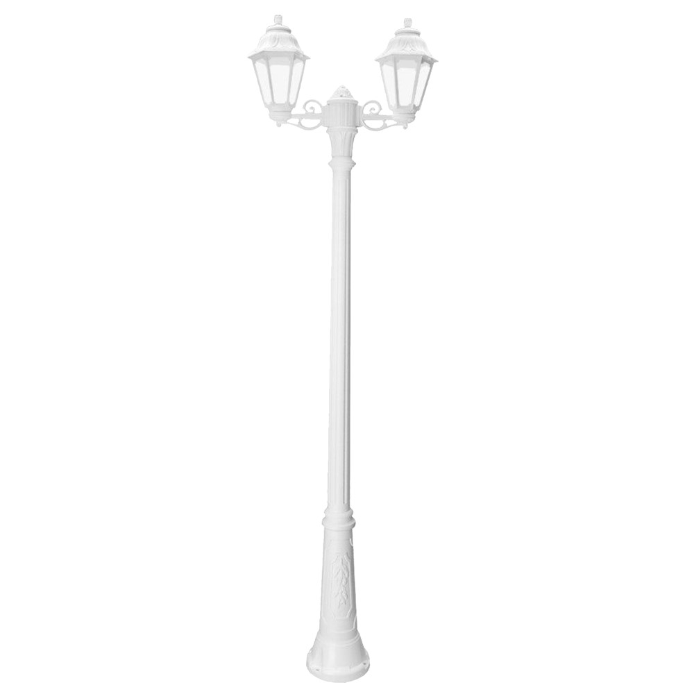 Exterior post light, Fumagalli, white, clear diffusor,2 x E27, 209 cm. Add beauty, elegance and functionality to your outdoor spaces, for more pleasant evening with friends and family in your gardens or terraces lighting is an unsubstituted element and an excellent choice would be the resine radiant with a fin design and stylish.