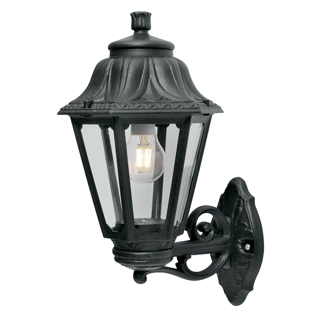 Exterior wall light, Fumagalli, black, clear diffusor, 1 x E27, 27.5x45 cm. Add beauty, elegance and functionality to your outdoor spaces, for more pleasant evening with friends and family in your gardens or terraces lighting is an unsubstituted element and an excellent choice would be the resin radiant with a fin design and stylish.