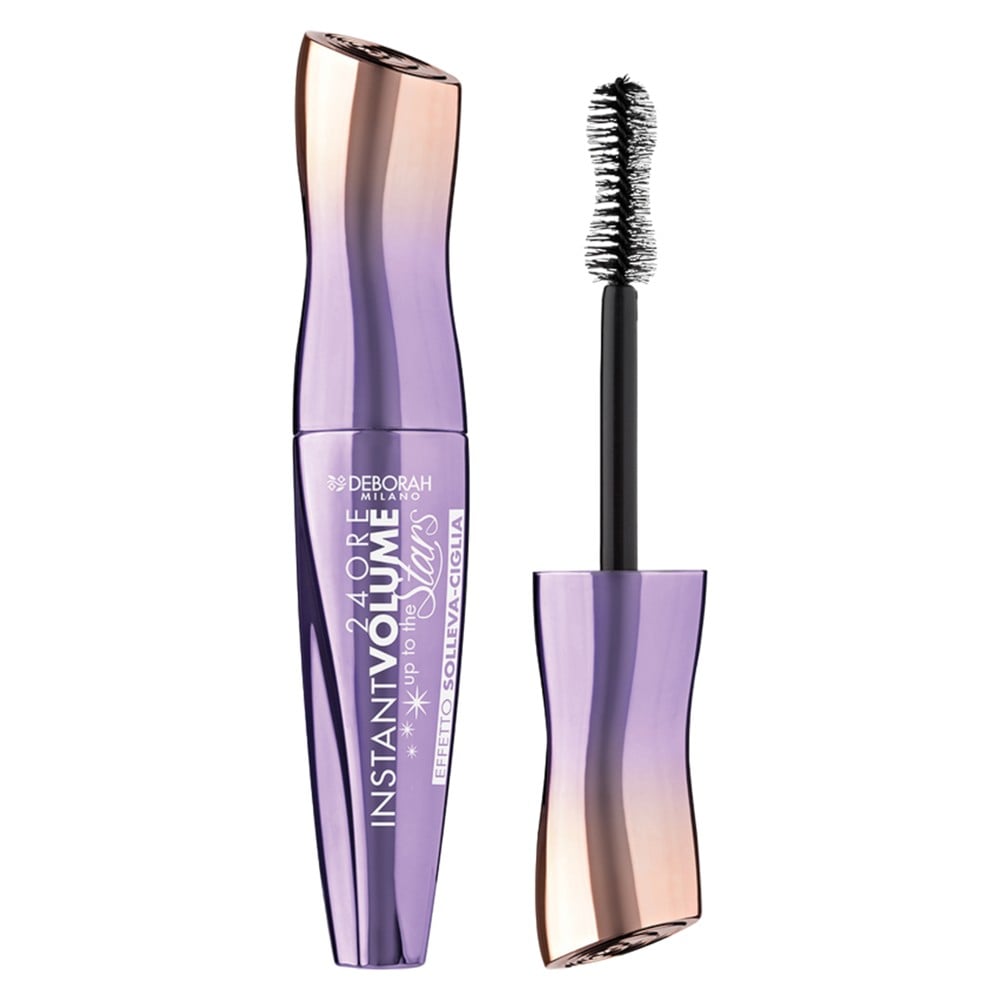 24 Hour Instant Volume Up To The Stars instantly volumizes, lifts and curls lashes. The volume effect is even tripled and the eyelashes are longer and immediately more curved. The fiber brush distributes the product evenly throughout the lashes, making application easy, for a WOW result that lasts all day. The formula enriched with silk proteins makes eyelashes soft and flexible.