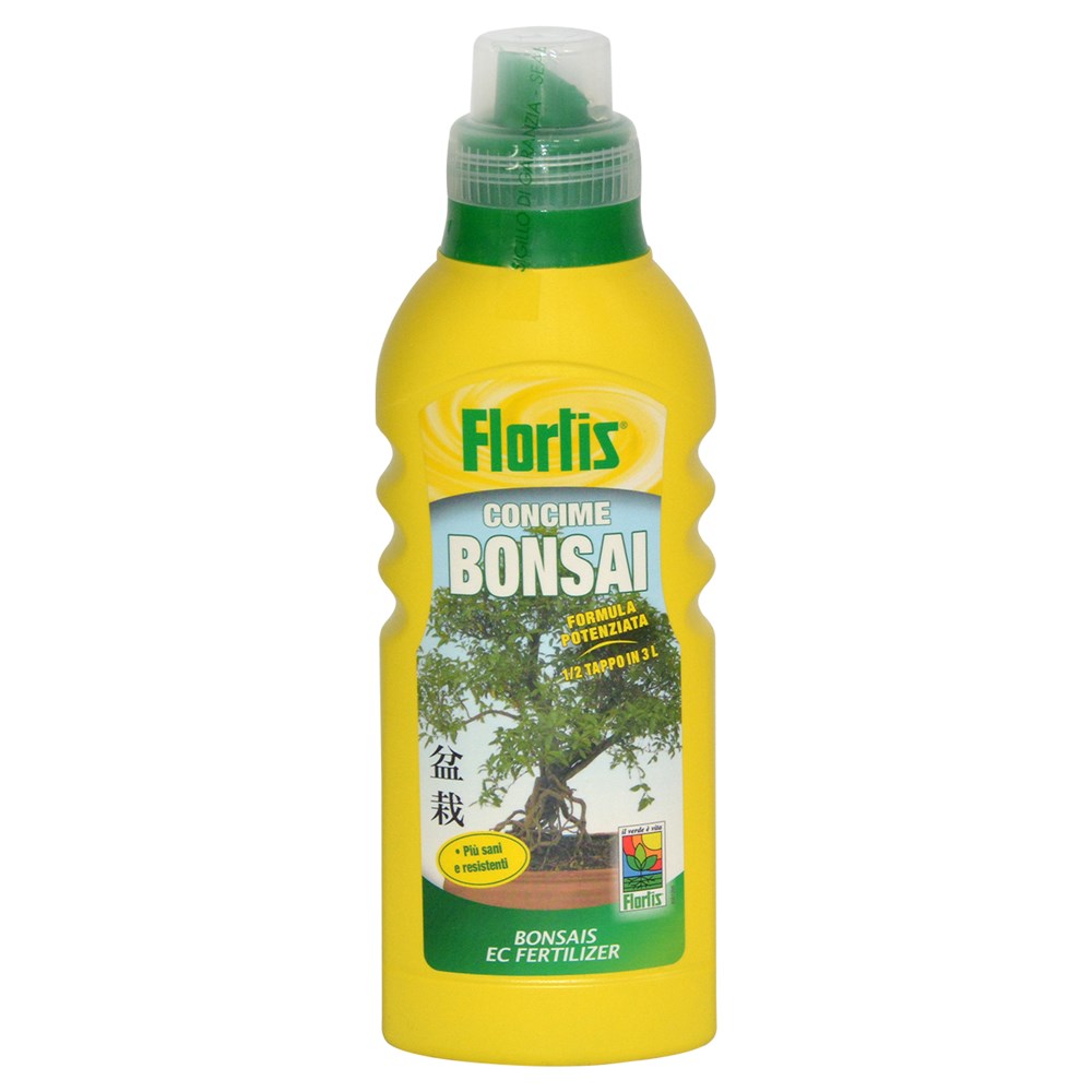 The formulation has been studied to feed the main sorts of bonsais, in order to guarantee a proper development of roots and foliage. The complete pool of micronutrients prevents leaves yellowing due to chlorosis, giving a greater resistance to adversities. EC Fertilizer NPK 4-7-7+B+Cu+Fe+Mn+Zn healthier and stronger plants. Use: the content of one cap (30 g) in 3 litres water every 10-15 days for young plants, every 20-25 days for older plants.