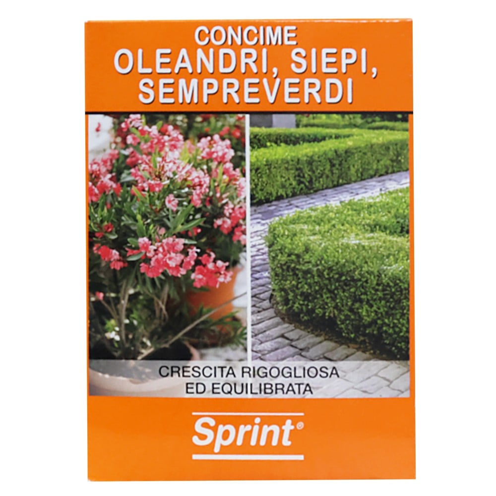 Specific for the luxuriant growth of oleanders, hedges and evergreens, thanks to the high nitrogen and potassium content. The particular formulation promotes the formation of leaves and prevents leaf yellowing. Ideal for oleander, photinia, viburnum, laurel, pittosporum, jasmine. Doses and methods of use, from 40 - 60 g/m². Distribute evenly over the surface and then water. Treat in spring and autumn.
