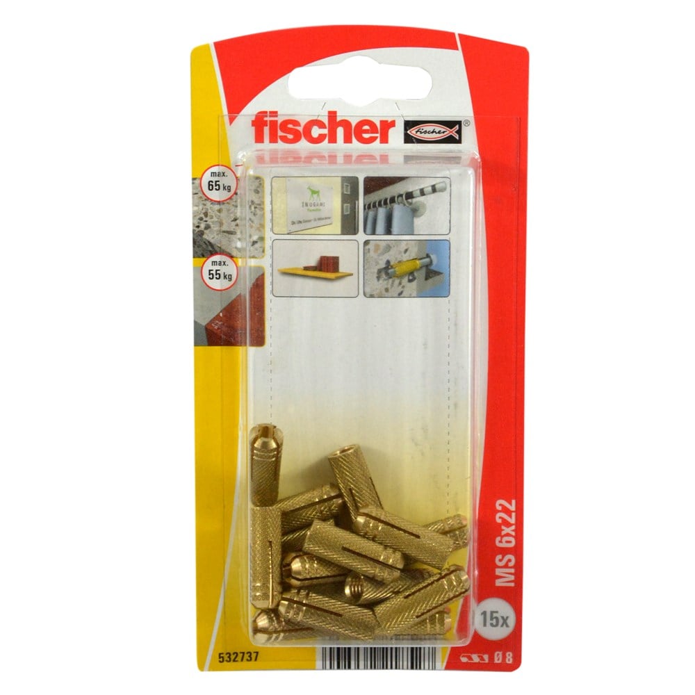The fischer brass fixing MS is an expansion plug made of brass for holding a metric thread. The special fixing is set in the pre-positioned installation. When driving in the screw or the threaded rod the brass fixing expands and anchors itself in the drill hole. Above all, the fischer brass fixing MS is suitable for fixing shelves, flow heaters, and aggregates in solid building materials.