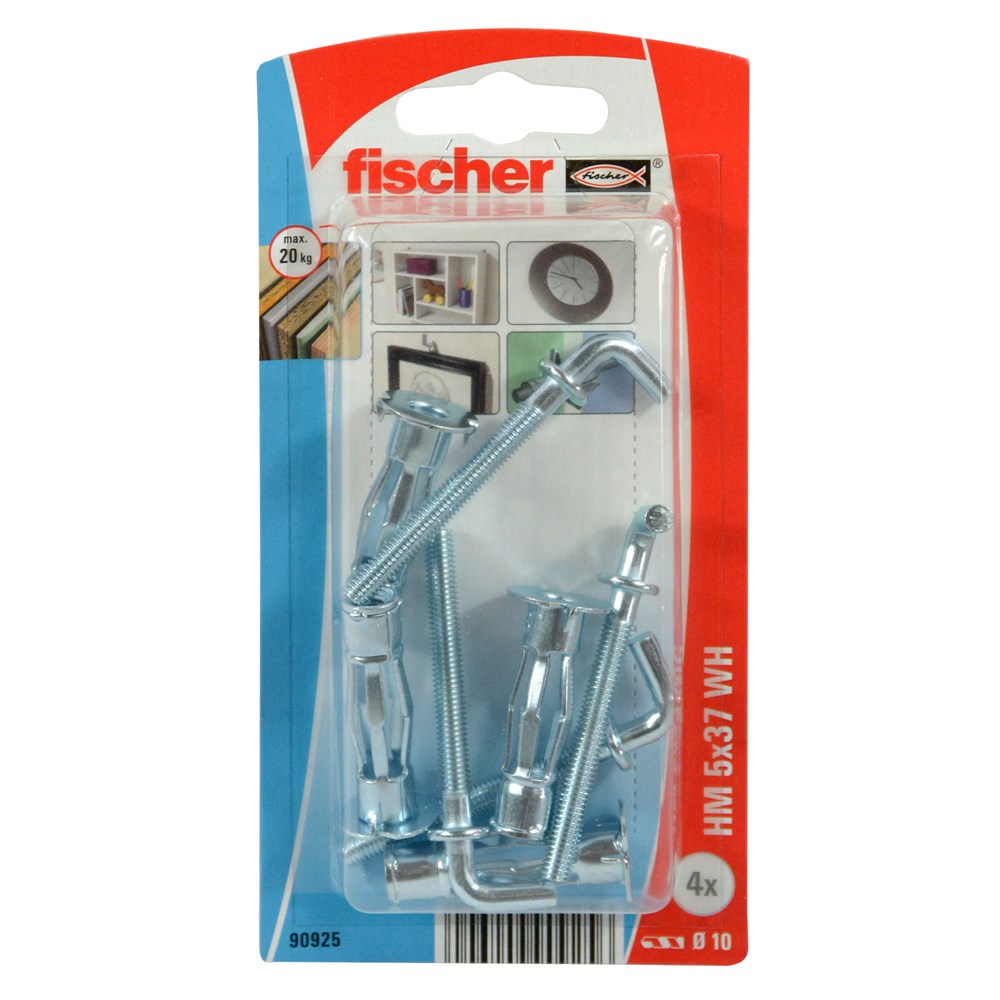 The fischer cavity metal anchor HM-H is a versatile cavity fixing with an angle hook for all panel building materials. The fixing is set with the fischer installation pliers HM-Z 1 in the pre-positioned installation. The fixing is pulled in the cavity against the board building material with the pliers. In this case, the expanding arms swing open and press onto the reverse side of the board. As an alternative, it is also possible to assemble manually. The cavity metal anchor HM-H is suitable for fixing lights, pictures, and lightweight wall shelves in internal areas.