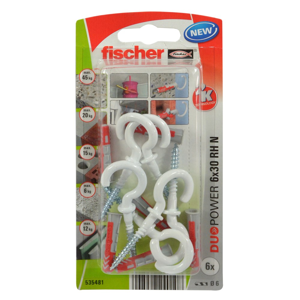 Fischer Universal plug 6 x DUOPOWER 6 x 30, 6 x round hook 4.5 x 63 nylon-coated