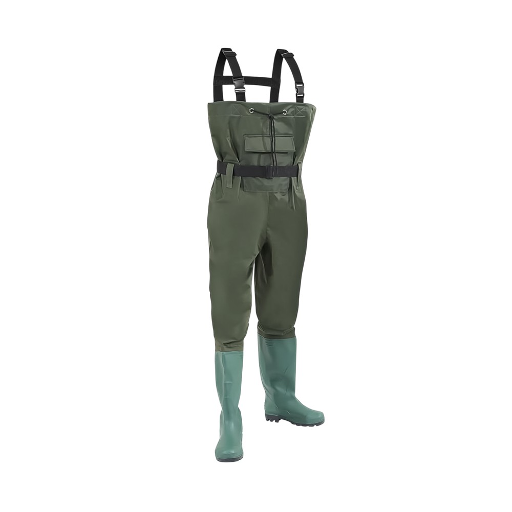 Waterproof long boots for fishing, made of durable PVC material. The integrated design includes boots attached to long trousers, which provide full protection up to the waist against water and moisture. The PVC material provides durability and is resistant to wear. They are ideal for fishing, water activities, or working in wet conditions. Available in size 42.