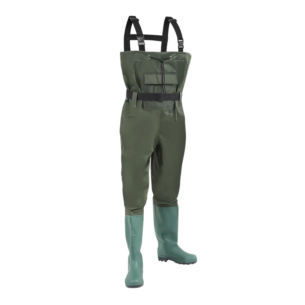Waterproof long boots for fishing, made of durable PVC material. The integrated design includes boots attached to long trousers, which provide full protection up to the waist against water and moisture. The PVC material ensures durability and is resistant to wear. They are ideal for fishing, water activities, or working in wet conditions. Available in size 44.