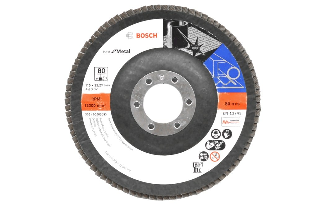 You're reviewing:Flap wheel for metal, Bosch, 115x22.2 mm, Grit 80, metali