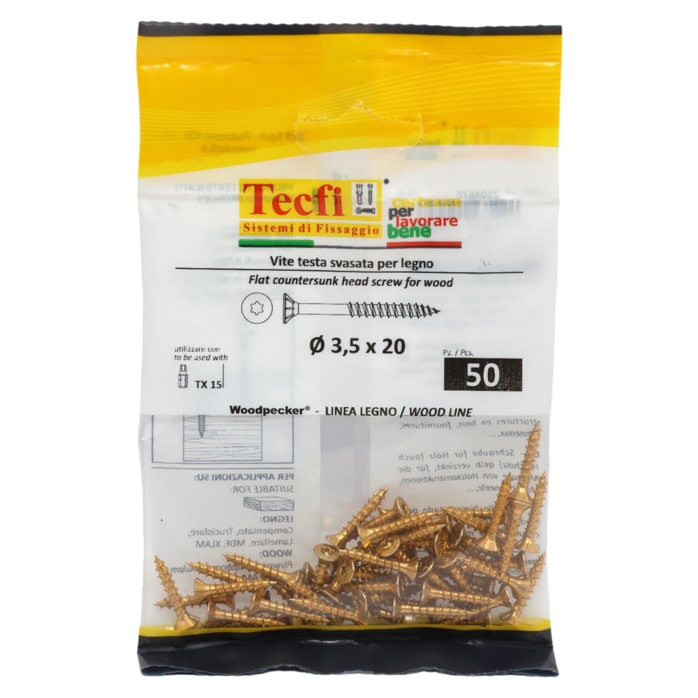 You're reviewing:Flat CSK head torx recess chipboard screw,yellow zp, Ø3,5x20mm, Bag 50