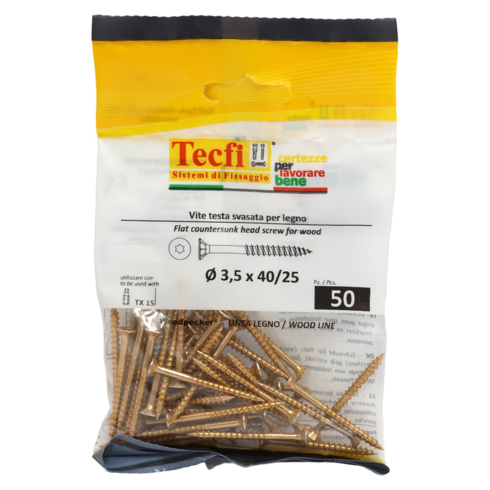 You're reviewing:Flat CSK head torx recess chipboard screw,yellow zp, Ø3,5x40/25mm, Bag 50