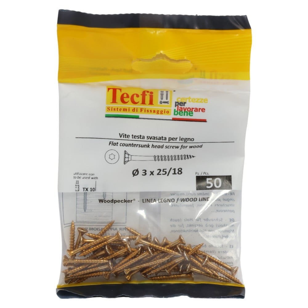 You're reviewing:Flat CSK head torx recess chipboard screw,yellow zp, Ø3x25/18mm, Bag 50
