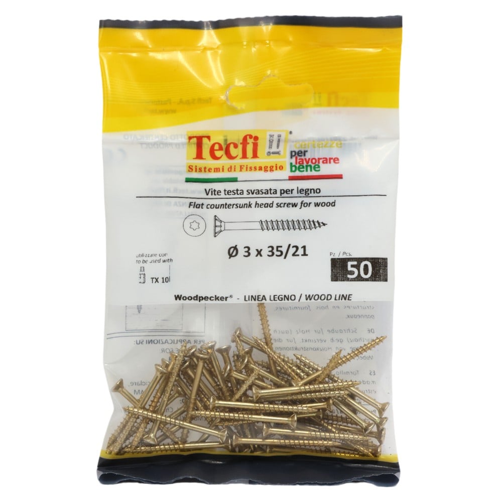 You're reviewing:Flat CSK head torx recess chipboard screw,yellow zp, Ø3x35/21mm, Bag 50