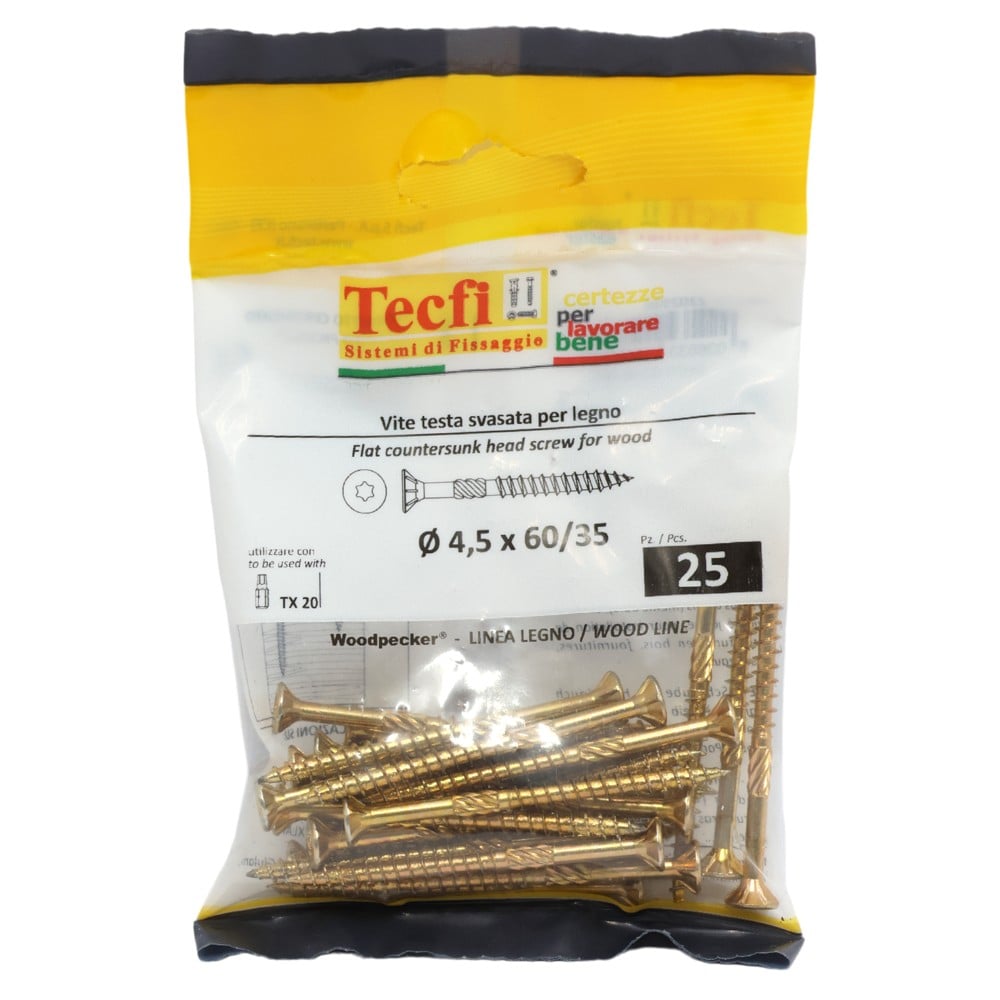 You're reviewing:Flat CSK head torx recess chipboard screw,yellow zp, Ø4,5x60/35mm, Bag 25