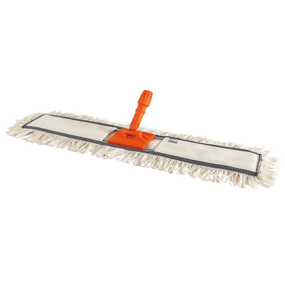 Mop cleaning set and holder 80 cm. Produced by the Italian brand, "Perfetto professional", for H.O.R.E.C.A. The mop is made of cotton material and the plastic holder with the internal metal structure, is used for wiping floor dust. Ideal for large premises.