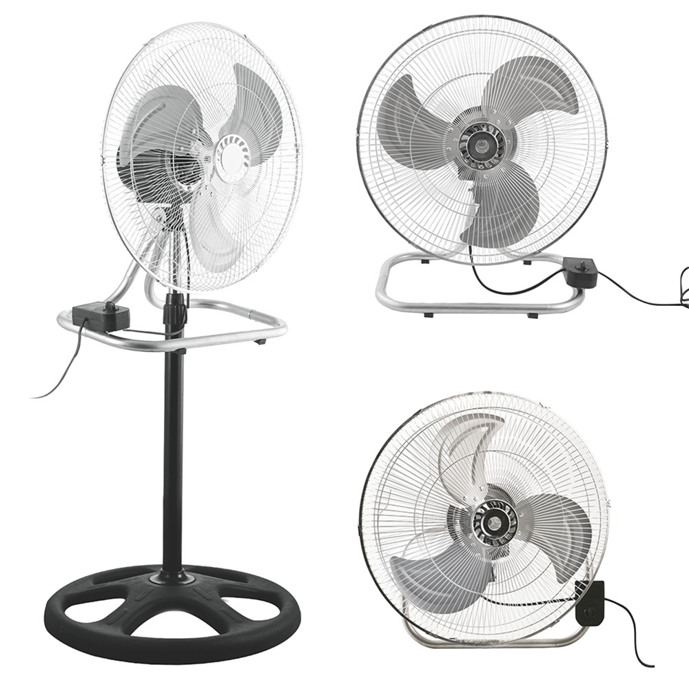 Kooper 3 in 1 floor fans easily adapted to the needs of all environments. Can be used as a floor fan for perfect coolness in larger rooms. To cool off at work, at lunch or dinner, simply lift your head from the base and place it on your desk or table. If, on the other hand, you have small and poorly ventilated spaces, thanks to the mounting kit included, it can be applied to the wall ensuring proper air circulation in the room. The fan has a power of 80 W.