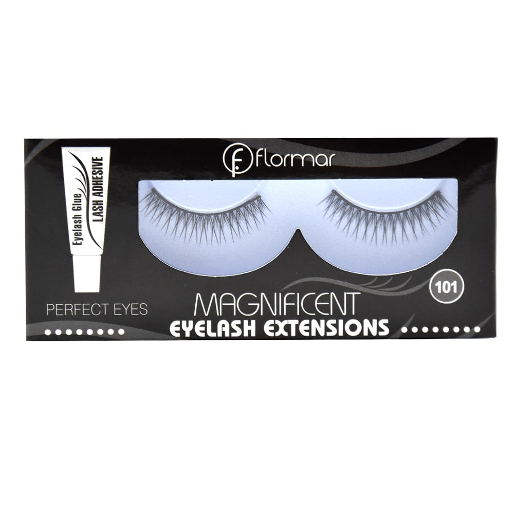 False eyelash set, with adhesive, Flormar, 17.5 x 7.6 x 1.9 cm; 18 Grams, N 101, black False eyelash extensions. The set consists of 2 lashes to complete a set with their glue. Easy to use. Suitable for use by their own fans or for professional use in hairdressing, its fibers are like natural fibers.