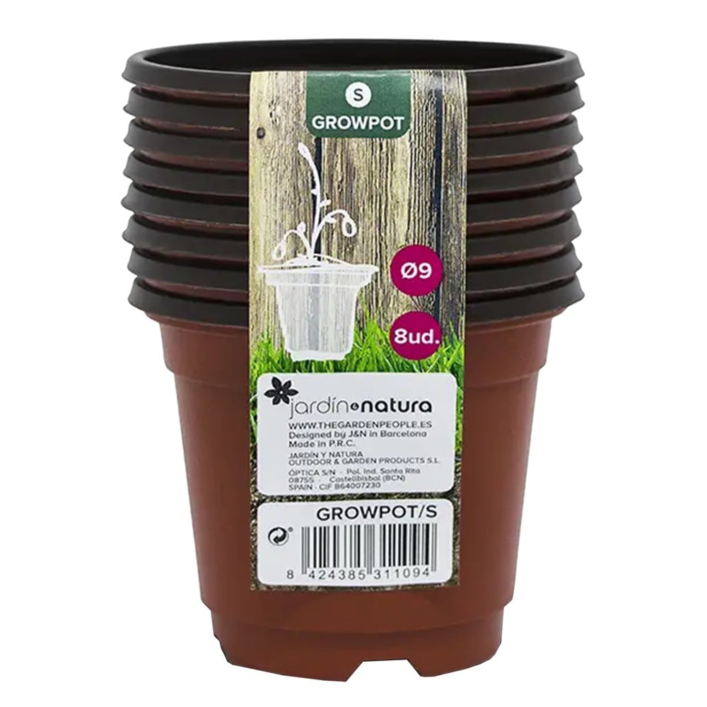 Set of 8 Jardin Natura flower pots, each measuring 9 cm, perfect for small plants or planting vegetables. Whether you are an experienced gardener or a beginner, these pots are perfect for adding greenery to any of your spaces.