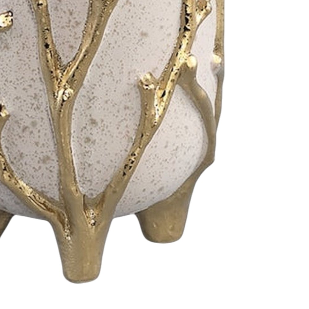 Flower pot, ceramic, cream/golden, 12x12xH24 cm