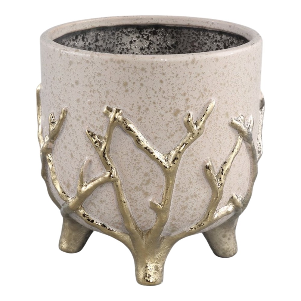 Flower pot, ceramic, cream/golden, 17x17xH17 cm
