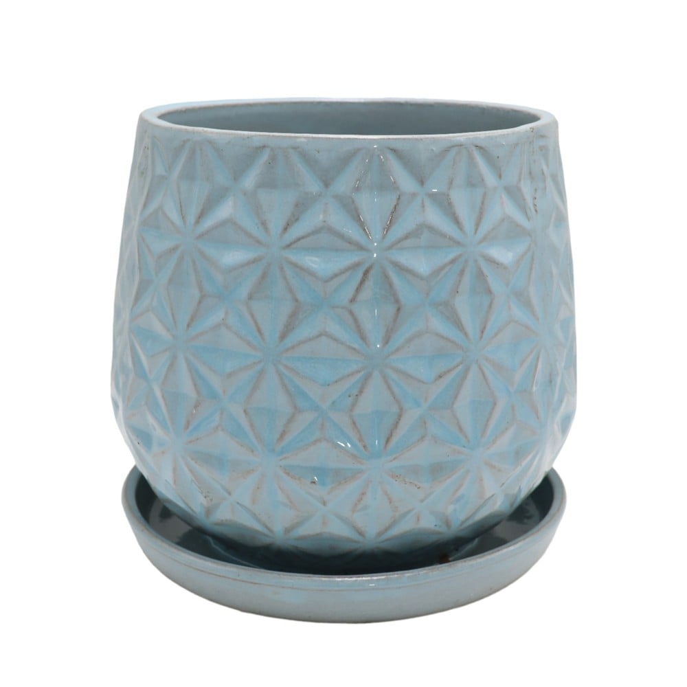 The flower vase is a beautiful and elegant piece of decor for your home. Carefully crafted from ceramic, it has a light blue color which gives a fresh and calm feeling to the environment. With dimensions of 21.5x21.5x20.5 cm, it is suitable for placing beautiful fresh flowers in your home. The ceramic material used to create this vase are of quality and make it a durable choice for long term use.