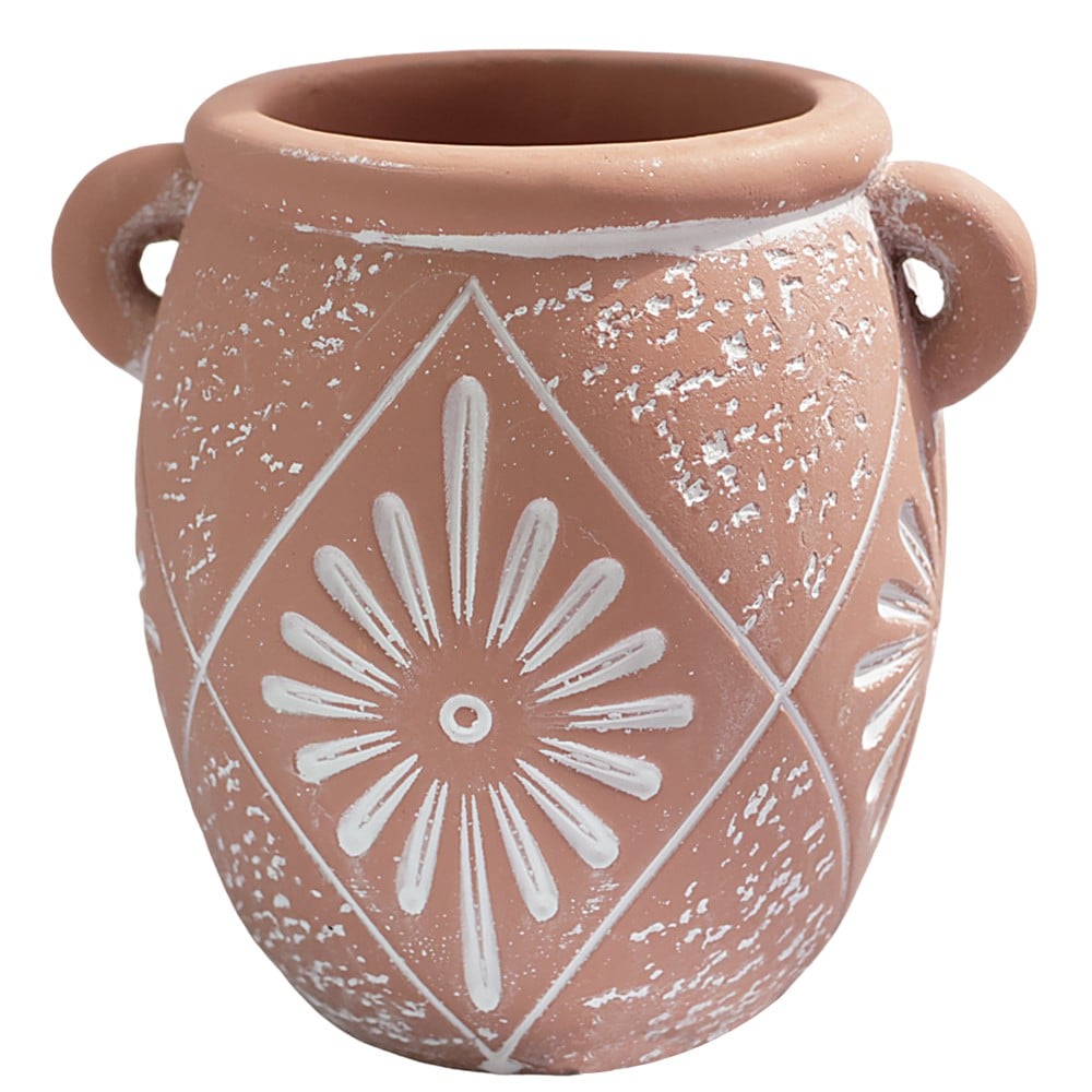 The flower vase made of ceramics with its color "Terracotta" offers an authentic feeling and a classic aesthetic for the decoration of your home. Carefully crafted from high quality ceramics, the vase brings a special touch to any environment. With its dimensions the vase offers enough space to display small or medium flowers in a beautiful and elegant way.