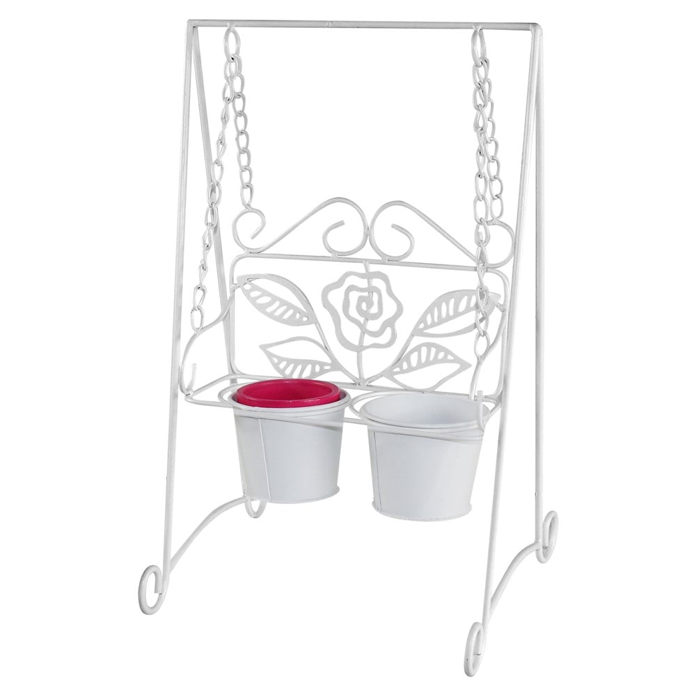 Flower pot holder (2 pots), metallic, white, 41x29xH41 cm
