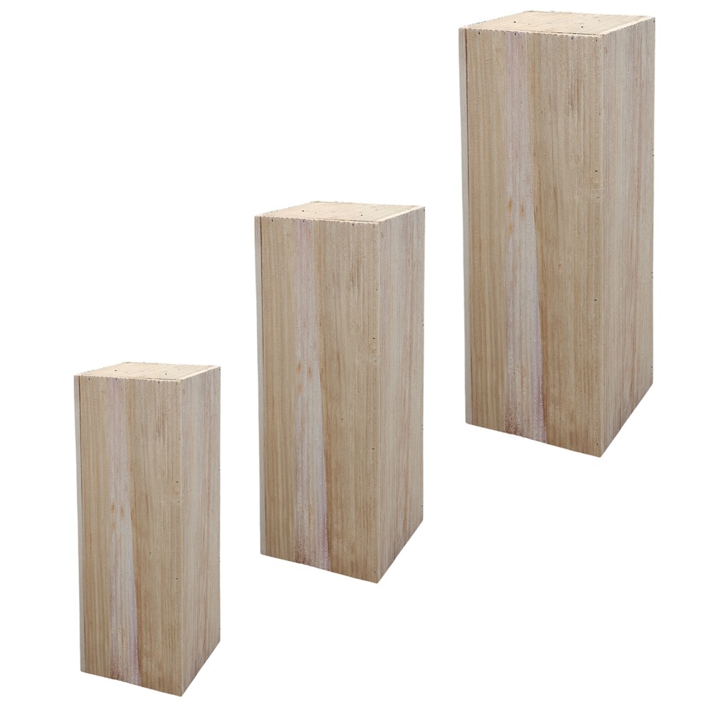 Flower pot holder, set 3 pieces, wooden, natural, 20x20xH60 cm; 25x25xH70 cm; 30x30xH80 cm
