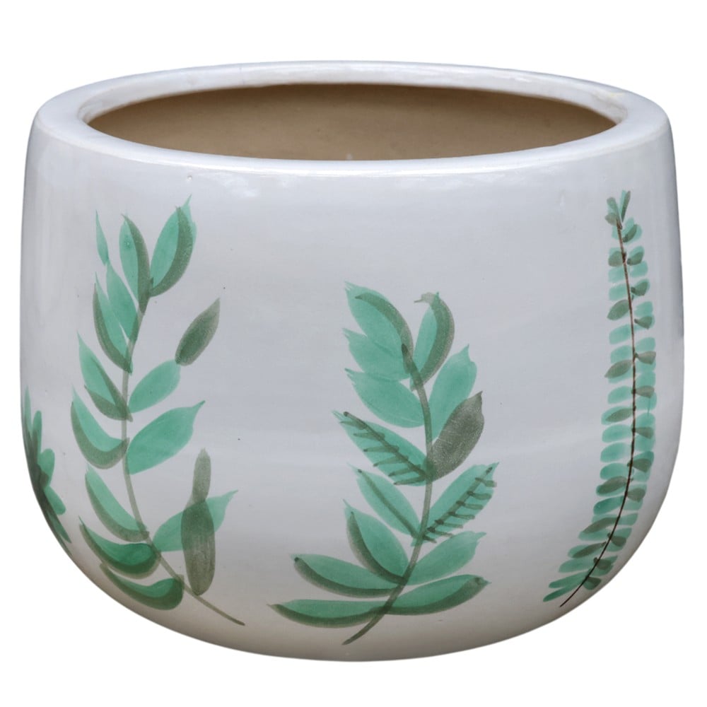 Flower pot, L, ceramic, white/green, Ø29xH22 cm