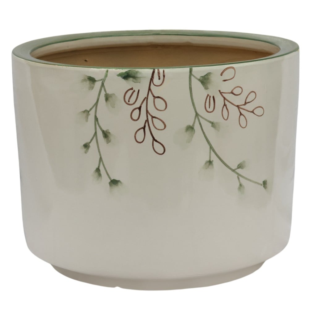 Flower pot, L, ceramic, white/green, Ø33xH26 cm
