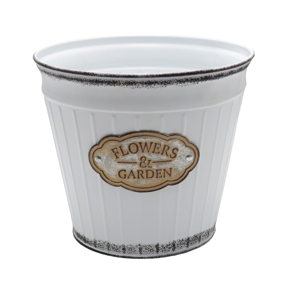 Flower pot, metal, white/brown, 17x16 cm