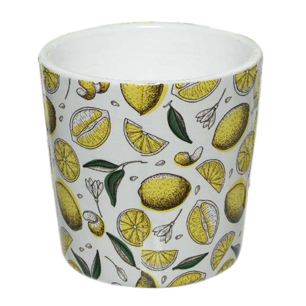 Flower pot, porcelan, white and yellow, Dia.10xH10 cm
