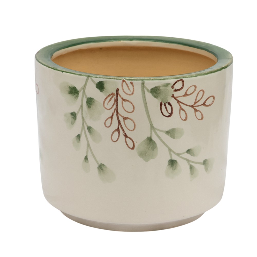 Flower pot, S, ceramic, white/green, Ø21xH18 cm