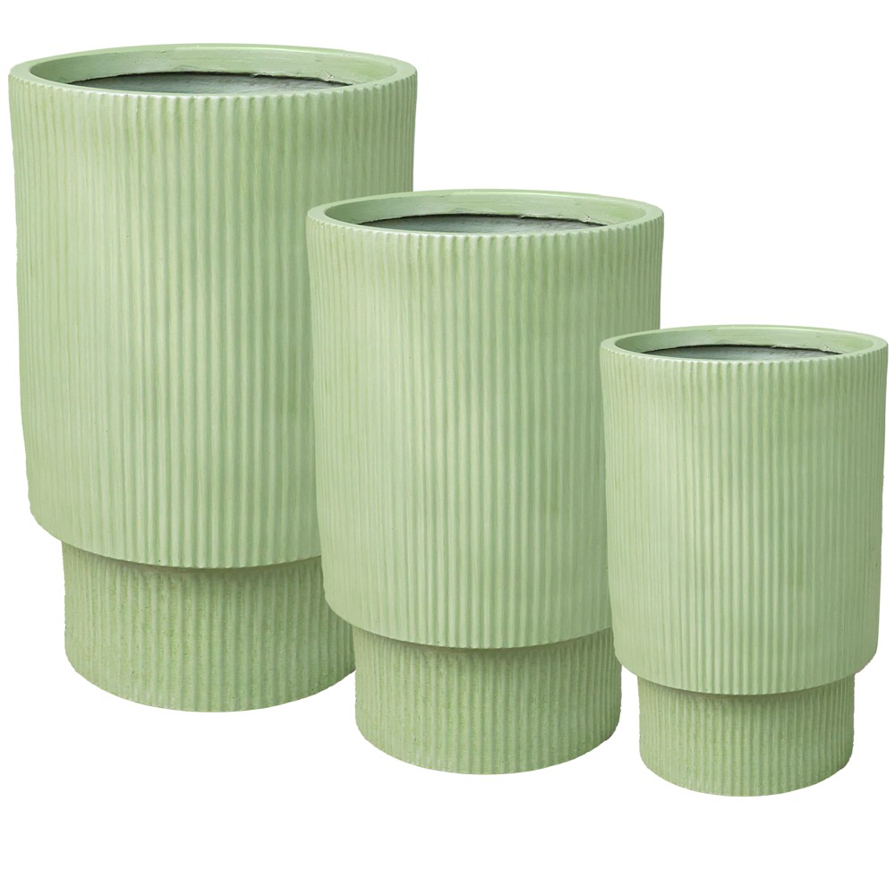 If you are looking for a flower vase set that brings a special sense of elegance and style to your premises, this set consisting of three vases created from fiberglass/clay in green color is the right choice for you. With different dimensions to choose from and a durable construction, this set will brighten and enrich any space in which it is placed.