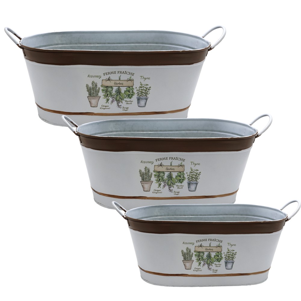 Flower pot, set 3 pieces, metal, white/brown, 35.5x16.5x15 cm; 40x18.5x16.5 cm; 42.5x22.5x18 cm