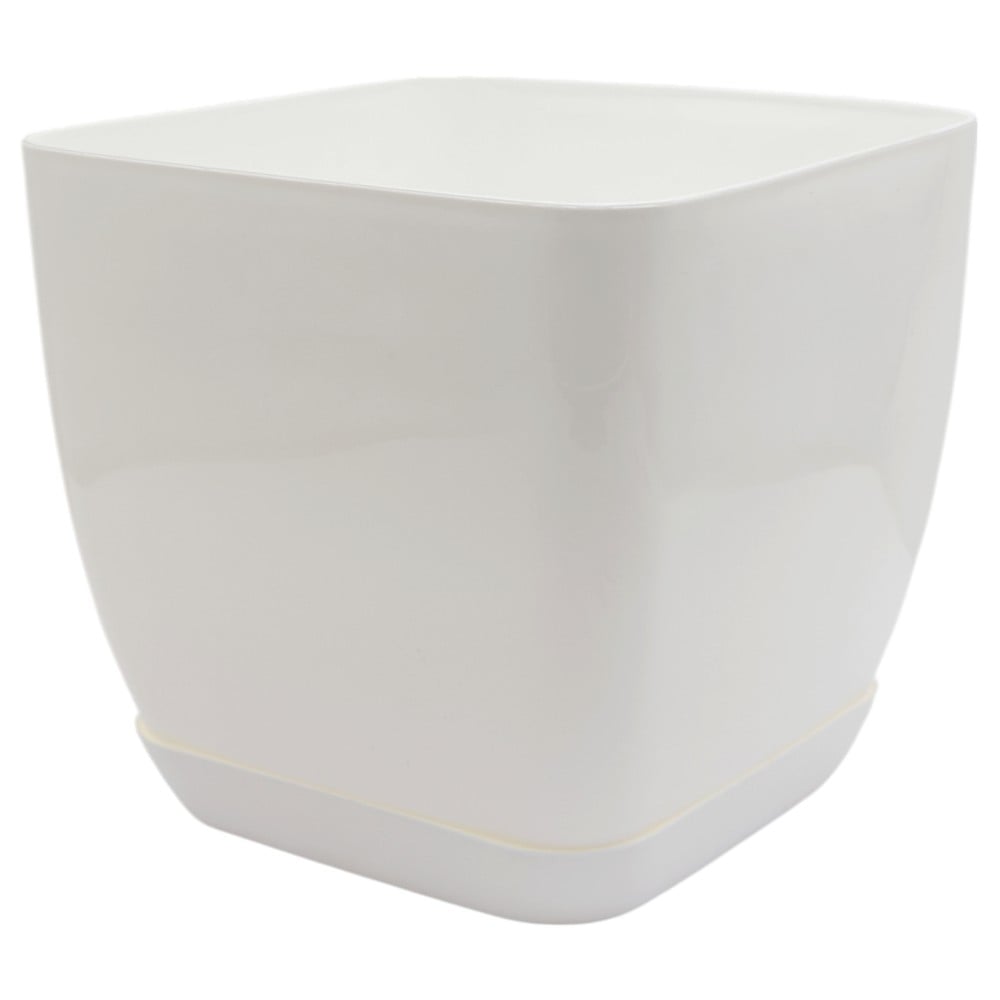 Flower pot, square, plastic, white, 26.5x26.5xH24.5 cm