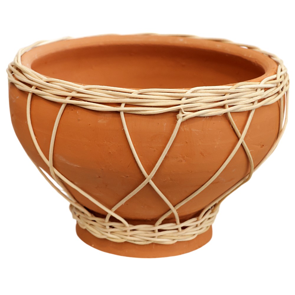 An elegant flower pot is always a must for your sorroundings. Such is this vase, which, in addition to being functional, will also serve as a decorative element in your furniture. A unique combination of rattan and terracotta.