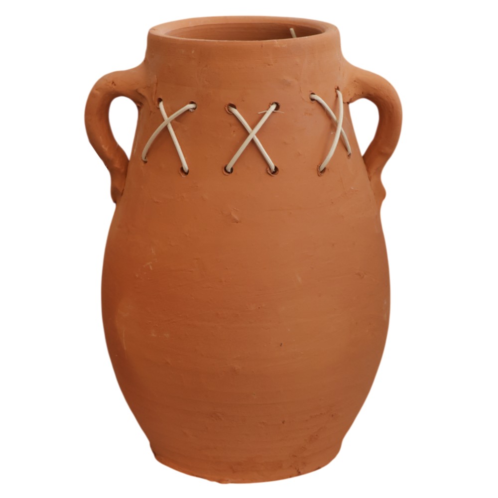 An elegant flower vase is always a must for your premises. Such is this vase, which, in addition to being functional, will also serve as a decorative element in your furnishings. A unique combination of rattan and terracotta.