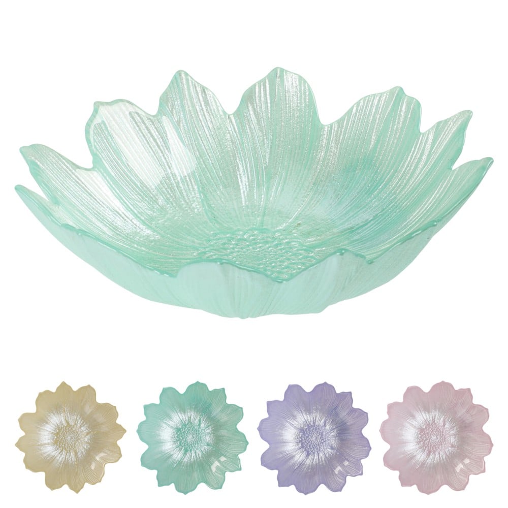 Glass bowl with a diameter of 16 cm. This elegant glass bowl is available in several delicate shades: sky blue, yellow, purple and pink. Suitable for serving desserts, fruits or salads, it is an ideal choice to add a touch of color and elegance to your table. The selected colors give it a clean and fresh look, making it suitable for festive occasions or for everyday use.